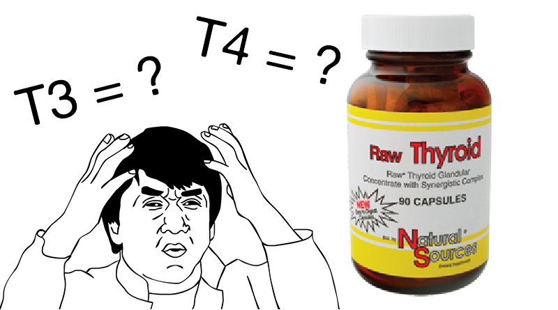 […] Each capsule contains 50mg of raw thyroid tissue. According to my calculations, this means that each capsule contains about 7.5 mcg of T3 and 32 mcg of […]